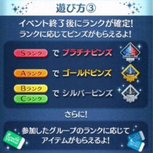 3つのグループのどれかで、Sランクに入れればプラチナピンズ、AランクでゴールドピンズBまたはCランクに入れればシルバーピンズがもらえます。