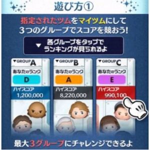 前回開催時より、3つのグループ全てで報酬獲得が可能になりました。なるべくすべてのグループで上位を取れるように、各グループで自分が得意なツム・SLVの高いツムでチャレンジしましょう。
